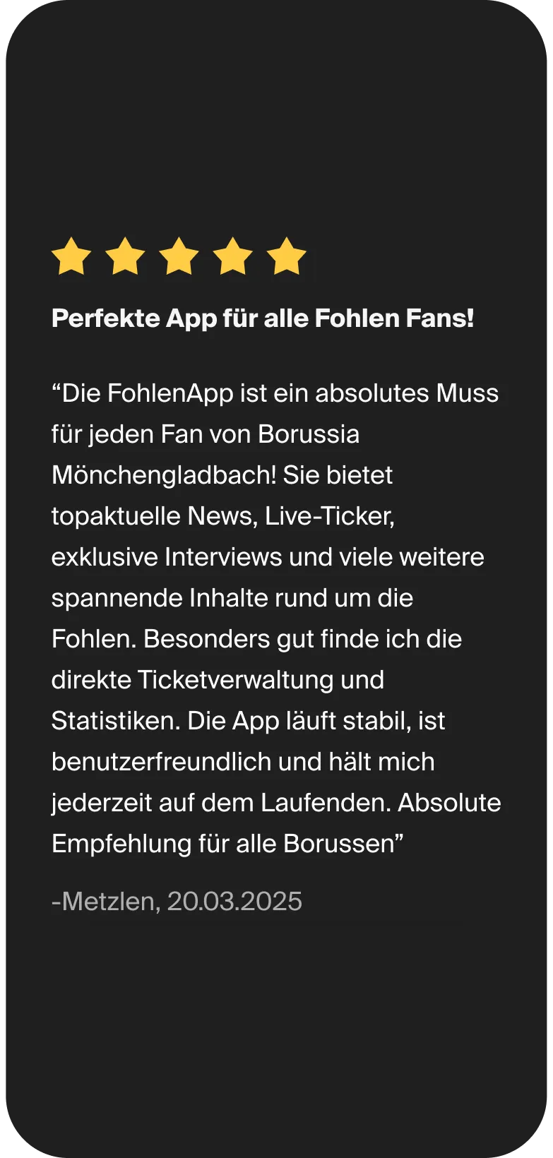 Gemeinsam mit Borussia haben wir für echtes Spieltagsgefühl die FohlenApp auf den Platz gebracht. Visuell durchdacht. Technisch belastbar. Wird heutigen Anforderungen gerecht. Und ist auch für kommende Spielzeiten bestens gerüstet.